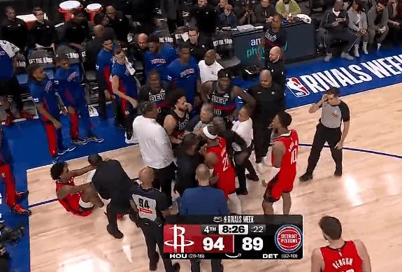 虎扑01月24日讯 NBA常规赛,火箭客场挑战活塞的比赛正在进行中。比赛的第四节,霍兰德阿门倒地拼抢球,史密斯喷垃圾话被吹技术犯规。来源:虎扑 虎扑01月24日讯 NBA常规赛,火箭客场挑战活塞的比赛正在进行中。比赛的第四节,霍兰德阿门倒地拼抢球,史密斯喷垃圾话被吹技术犯规。来源:虎扑...